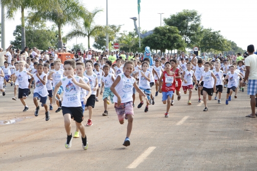 A Corrida Água Kids realizada em frente ao Paço Municipal neste domingo (18)