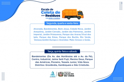 Confira abaixo o cronograma de coleta de resíduos e de limpeza urbana: