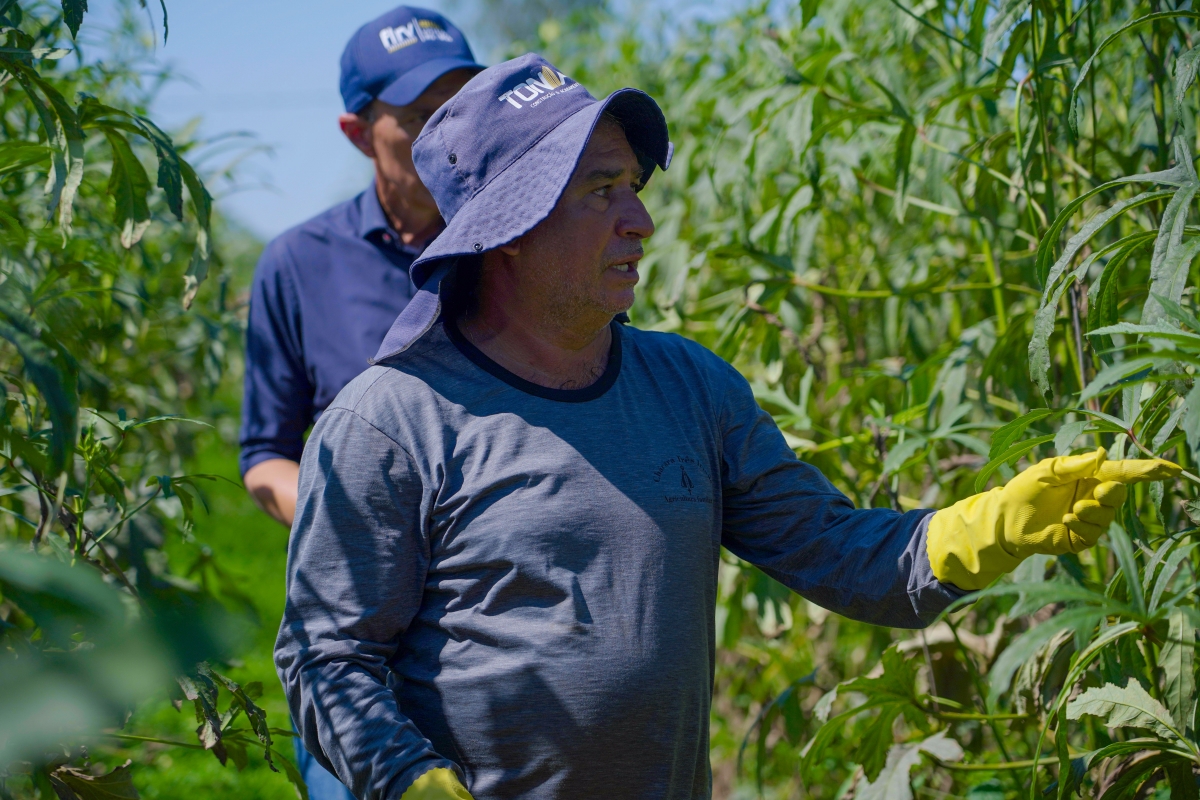 O agricultor familiar Amaraí Teixeira da Silva, da comunidade Cedro, relatou os benefícios do suporte oferecido pela Prefeitura em sua propiedade, onde ele e a familia produzem quiabo, pimenta, jiló e berinjela.