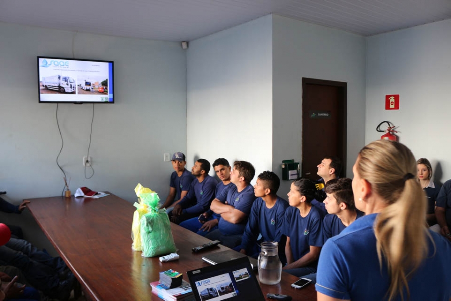 A primeira ação foi realizada na empresa Popcorn, que está realizando a 2ª Sipat. A engenheira sanitarista Angela Emanuele Casonatto ministrou palestra aos colaboradores sobre a correta separação do lixo domiciliar e também sobre o sistema de coleta mecanizada existente no município.