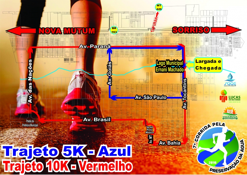 O trajeto de 05 km, terá início no Lago Municipal Ernani José Machado, seguindo para a Av. Tocantins, passando pela Av. São Paulo, em direção à Av. Goiás. Em seguida os corredores seguirão para a Avenida Paraná e finalizando no Lago Ernani José Machado.