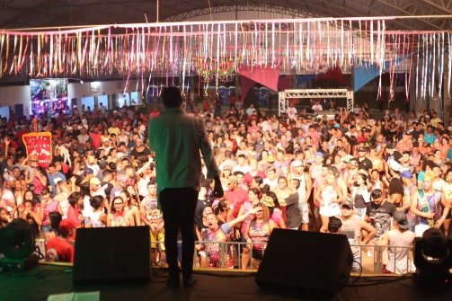Os candidatos do bloco Os Fanfarrões, Daniele Borges e Anderson Amiki, foram coroados nesta edição do Carnaval