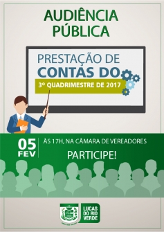 A audiência será realizada no auditório da Câmara de Vereadores, com início às 17h