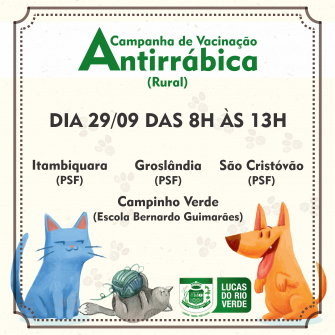 Todos os gatos e cachorros com mais de 90 dias de nascimento, exceto gestantes e lactantes, devem ser imunizados