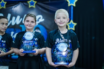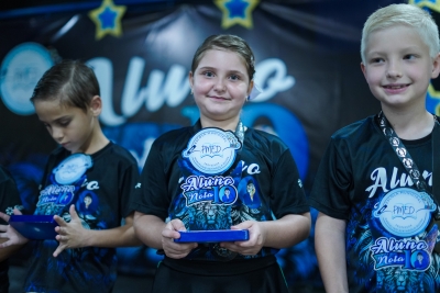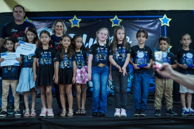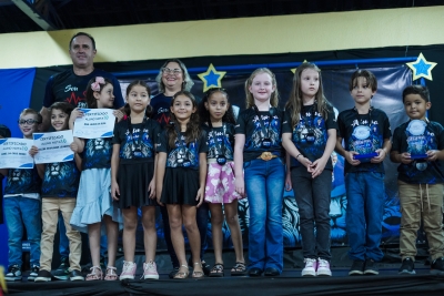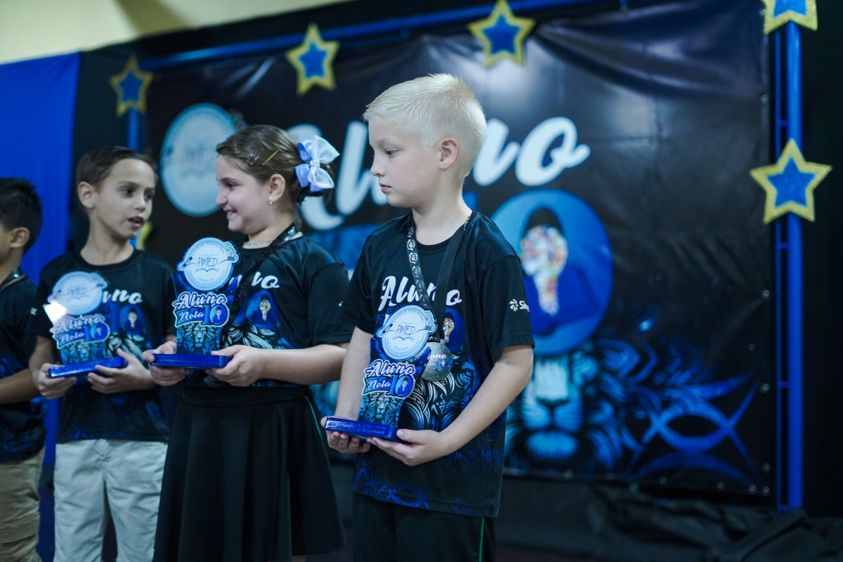 Ao todo, 450 estudantes desfilaram pelo tapete vermelho e subiram ao palco para receber seus prêmios: 150 camisetas personalizadas, 150 medalhas e 150 troféus, entregues aos alunos que mantiveram um ótimo desempenho escolar ao longo de todo o ano.