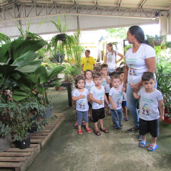 Na manhã de hoje (30), os alunos da turma do Infantil II D da Creche Municipal Menino Jesus, comandada pela professora Juliana Cristina Arruda, realizaram um passeio no Viveiro Sempre Verde.
