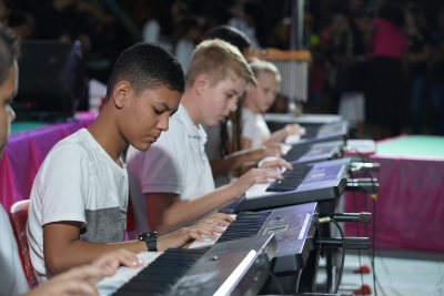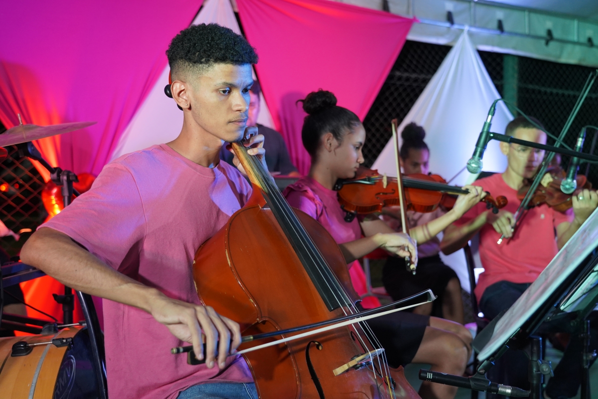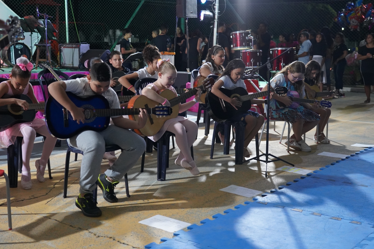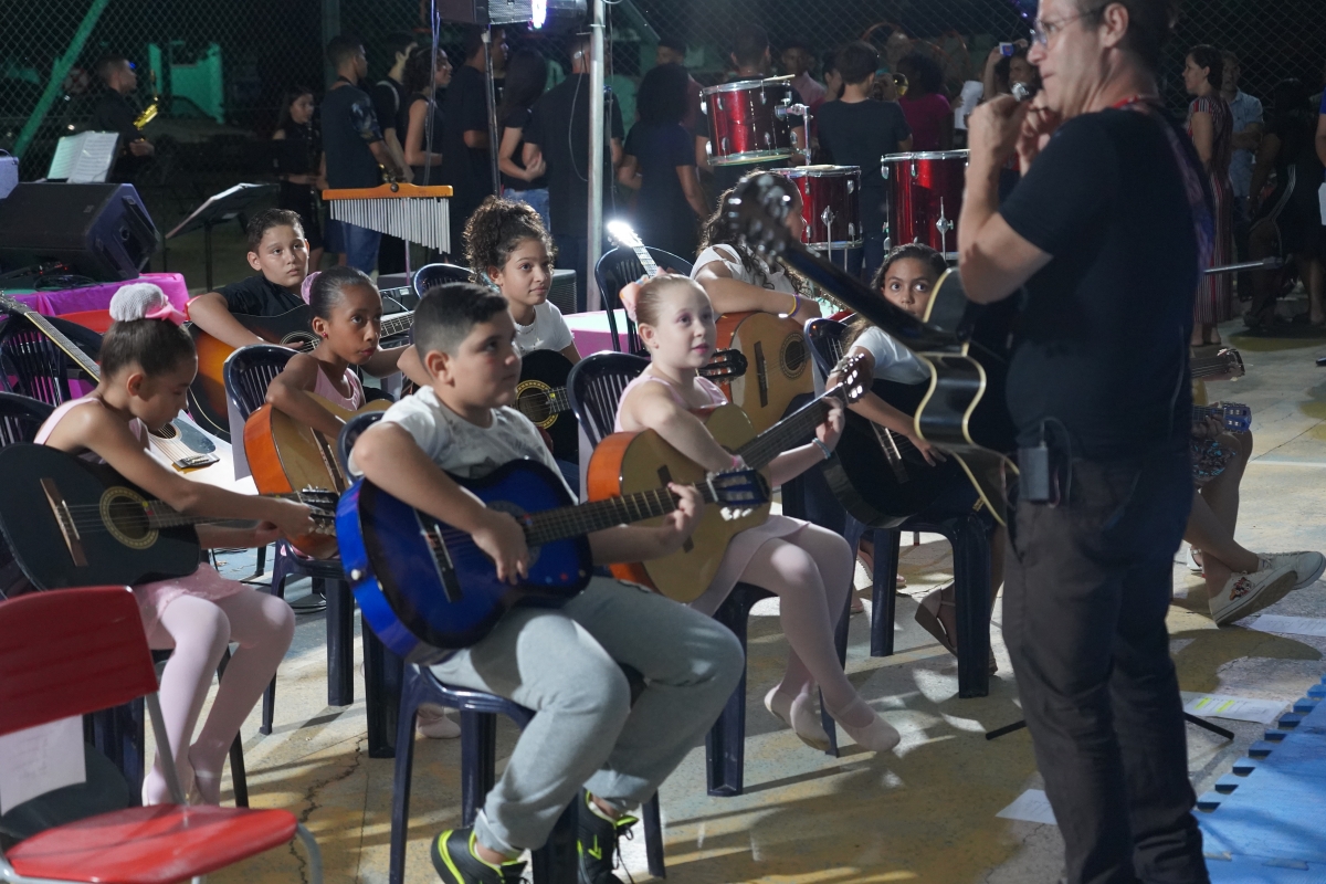De acordo com a Secretaria, mais de 200 jovens músicos, integrantes das 11 oficinas, como percussão, sopros, teclado, cordas, etc, participaram da apresentação. A homenagem também foi marcada pela presença do grupo de capoeira e das alunas da oficina de ballet.