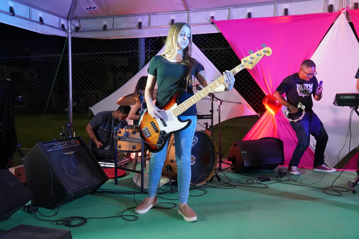 A secretária Luciana Bauer explica que a ideia do evento foi também de servir como palco aos estudantes que estão aprendendo a música por meio das oficinas.