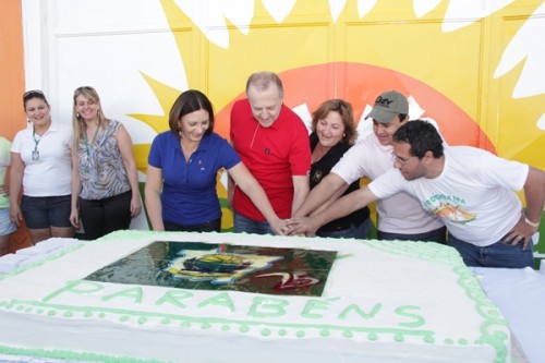 Dando continuidade à programação de aniversário, no período da tarde, foi realizado o corte do bolo e foram distribuídos refrigerantes e 12 mil pedaços de bolo para mais de três mil pessoas no Parque de Exposições Roberto Munaretto.
