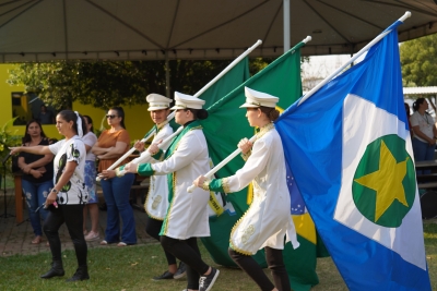 O Ato Cívico contou com a apresentação do Hino Nacional e do Hino do Município pela Banda Musical de Lucas do Rio Verde (Bamulv) - Fanfarra Municipal.