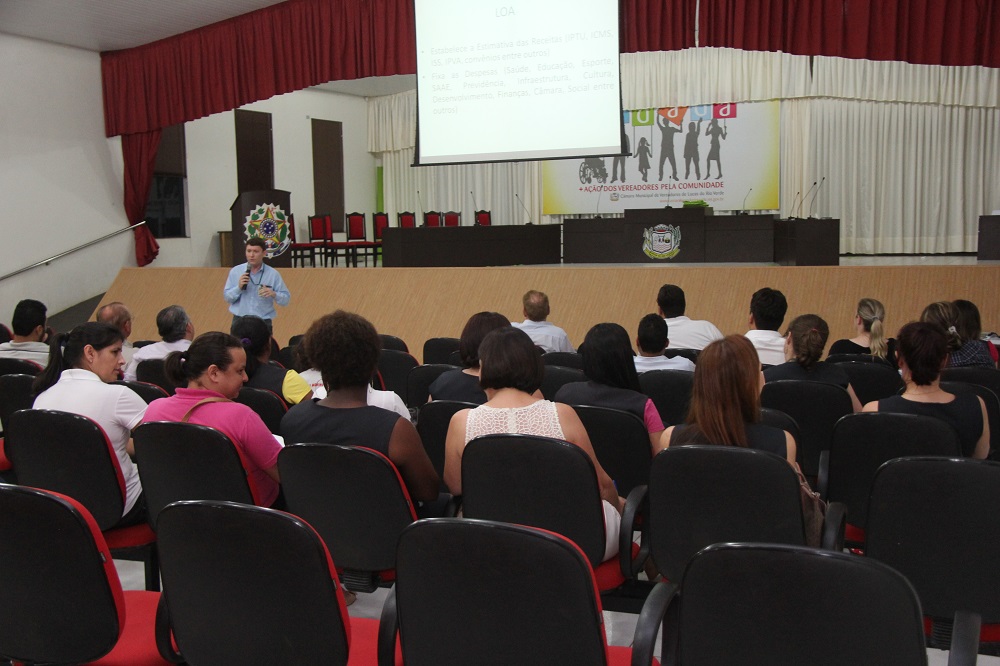 Em seguida, foi realizada a apresentação da Lei Orçamentária Anual (LOA) referente ao ano de 2015. A LOA estabelece e estima as receitas e despesas para o próximo ano, de cada setor da administração, de acordo com os valores de impostos e convênios firmados.