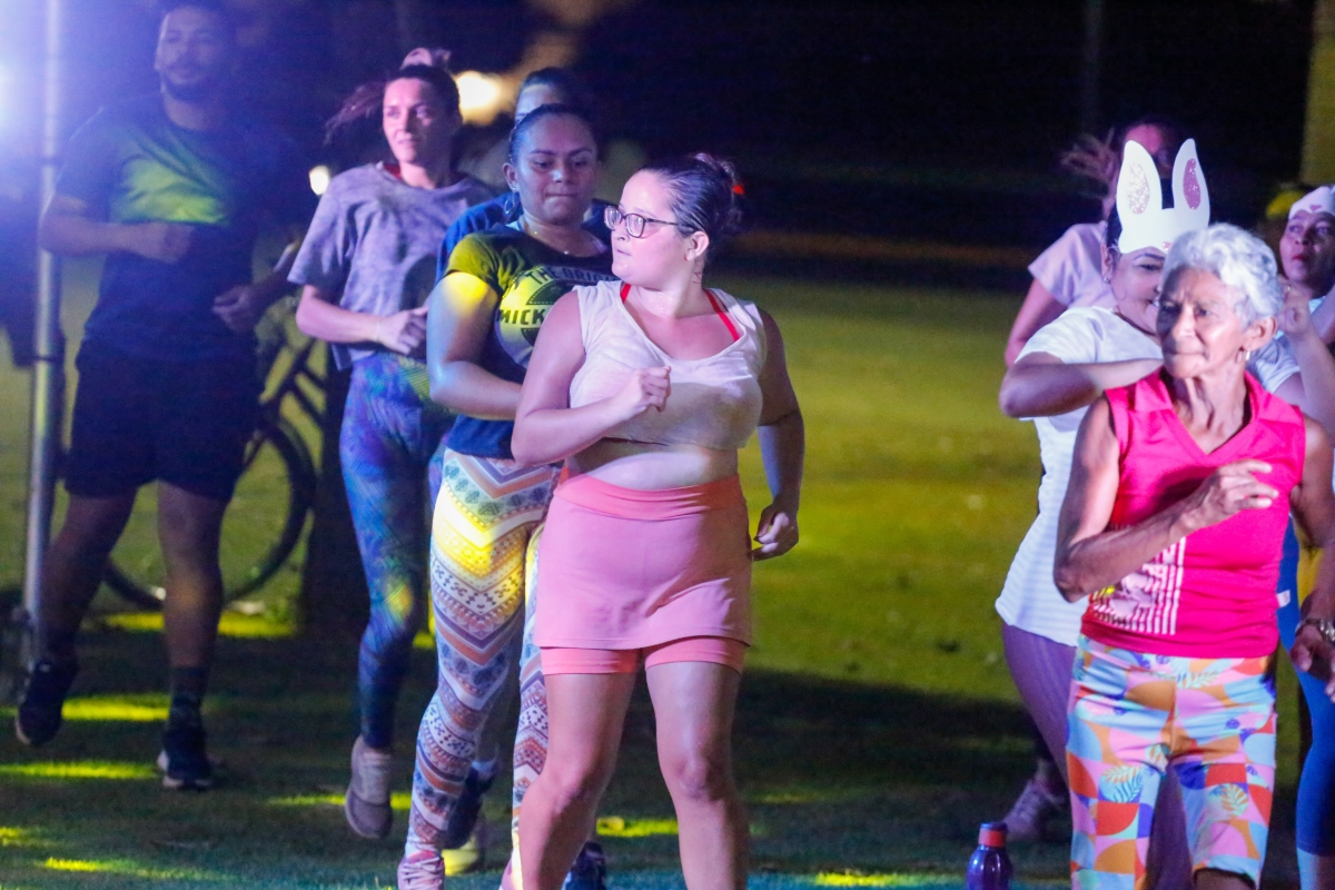 Iniciado no começo da noite, a aula foi ministrada pelas professoras do programa nas praças. Foram quase duas horas de atividades, envolvendo dança, ginástica e laboral.