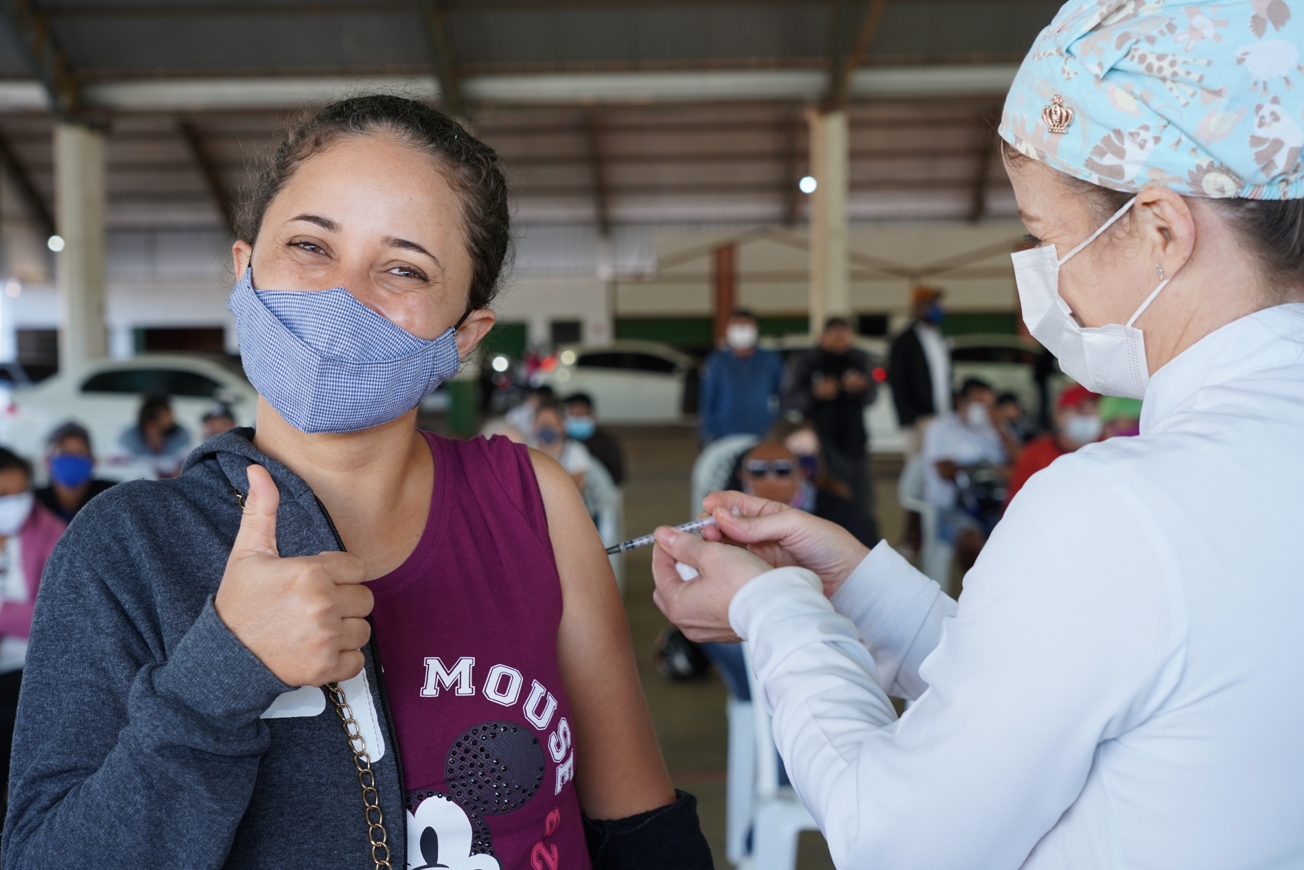 Nessa etapa, foram vacinadas 1.479 pessoas que chegaram a pé ou nos veículos. A aplicação das doses começou bem cedo, às 7h, e seguiu até 10h desta quarta.