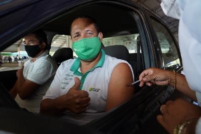 Mauricio Batiste chegou de carro e, alegre, recebeu a primeira dose do imunizante. “Eu penso que essa é melhor maneira de estarmos mais seguros e protegidos contra a Covid-19”, explica Batiste.