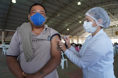 De muito bom humor e fingindo medo da agulha, Jair André dos Santos arrancou boas risadas das profissionais no momento da vacinação. Depois de receber a primeira dose, ele não poupou elogios à organização. “Esses profissionais são verdadeiros heróis! Graças a Deus está tudo correndo nos conformes, tudo direitinho e muito bonito. Eu estou feliz e me sinto honrado pelo trabalho que o nosso município está fazendo”.