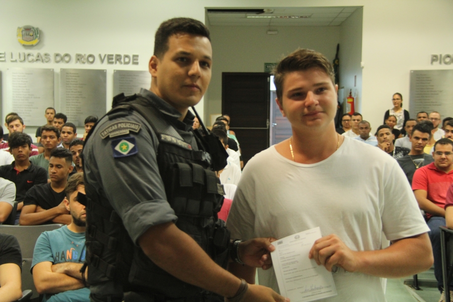 Cerca de 200 pessoas fizeram o alistamento pela 135º Junta do Serviço Militar e Departamento de Identificação. A solenidade foi realizada no Auditório dos Pioneiros, no Paço Municipal, e conduzida pelo 2º tenente PM Cleyton Cezar Peixoto.
