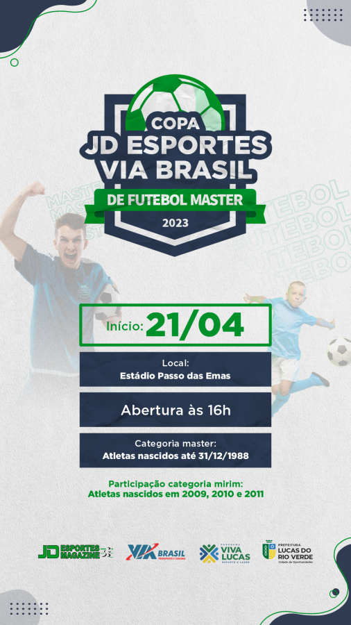 Ainda na sexta-feira, às 16h, começa a Copa Jd Esportes / Via Brasil de futebol Master. A abertura será no estádio Passo das Emas. Além dos atletas da categoria master, nascidos até 31/12/1988, a copa terá a participação das categorias mirins, para atletas nascidos de 2009 a 2011.