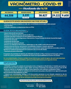 A sequência da prioridade foi definida pelo Ministério da Saúde no Plano Nacional de Vacinação contra a Covid-19 e o envio, quantidade e finalidade das doses é de responsabilidade do Governo do Estado. Em nova determinação, o Governo informa que, a partir de agora, não será mais trabalhado o envio de doses por grupos, apenas por faixa etária (exceto para segundas doses).