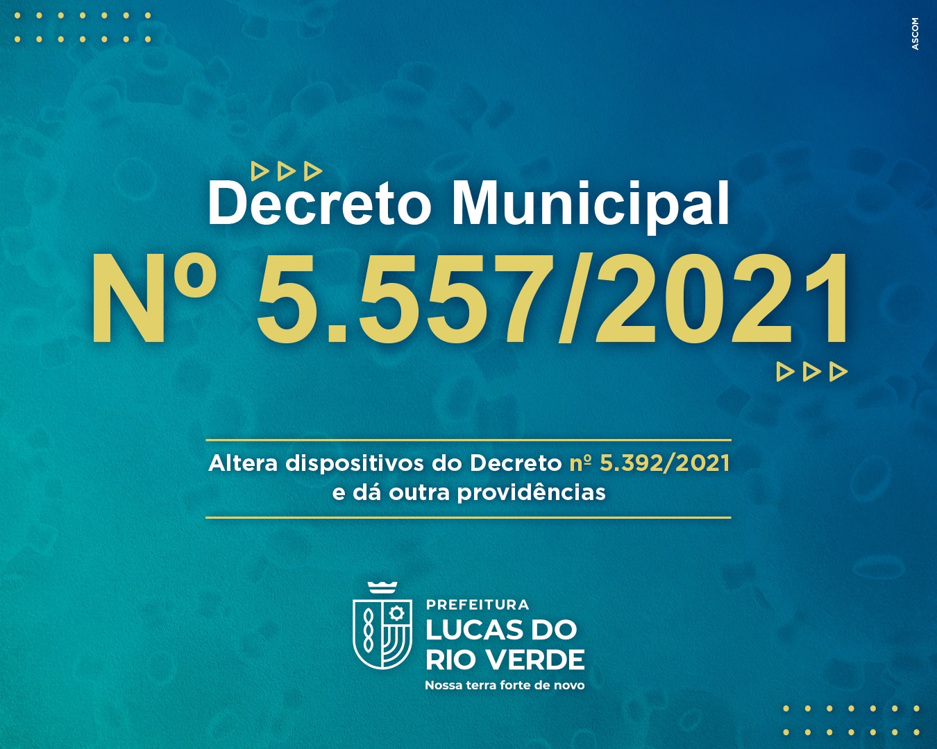 A Prefeitura de Lucas do Rio Verde publicou, nesta sexta-feira (03), o Decreto Municipal n° 5.557/2021, que altera dispositivos do Decreto nº 5.392. As novas medidas levam em conta a avaliação de indicadores do cenário epidemiológico, com a redução no número de casos de coronavírus e no percentual de ocupação de leitos de enfermaria e UTI do Estado, além do avanço na vacinação contra a Covid-19.