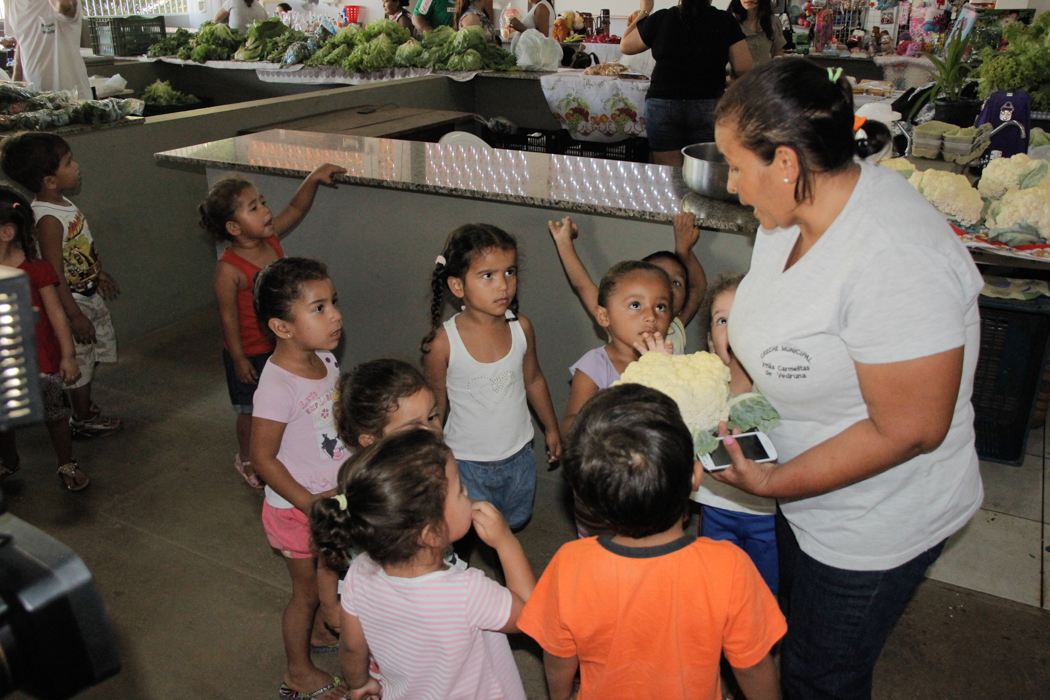 Cerca de 25 crianças da turma Infantil II da Creche Municipal Irmãs Carmelitas de Vendruna visitaram na tarde de hoje (06) o Mercado do Produtor. A ação faz parte do Projeto Cores e Sabores.