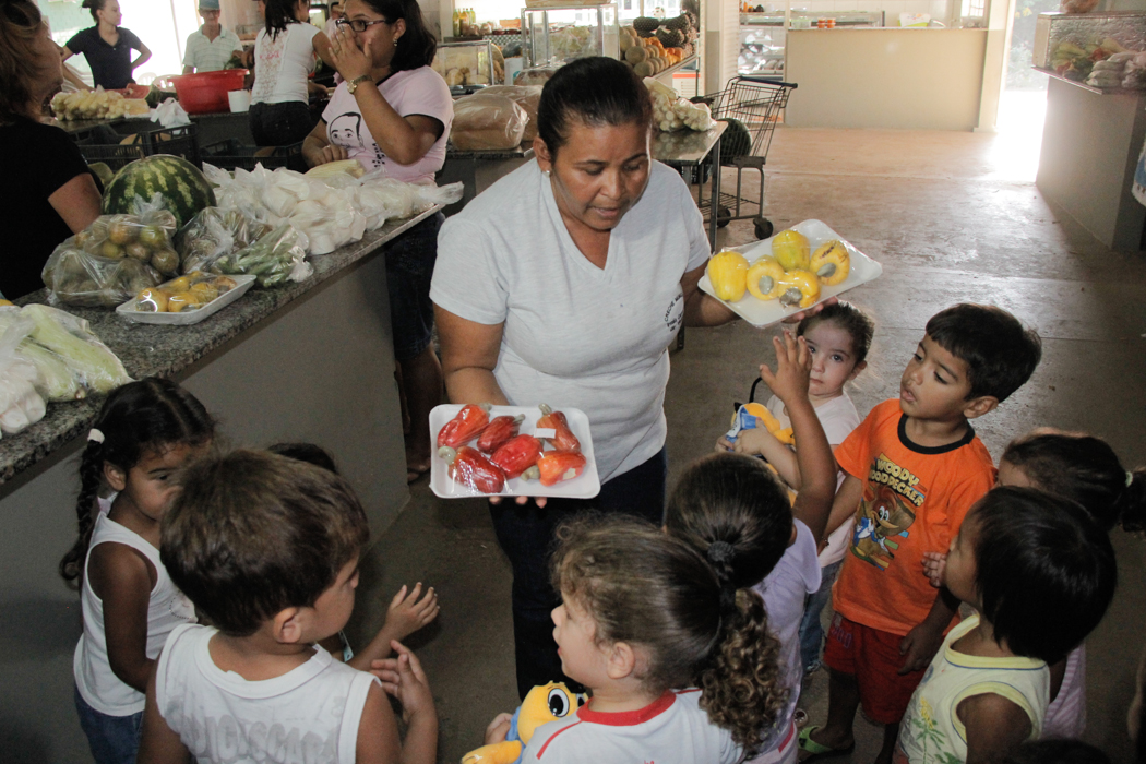 Além da visita de hoje no Mercado do Produtor, as crianças já visitaram um supermercado para conhecer os alimentos saudáveis e os que não são saudáveis. Na visita cada criança escolheu uma fruta que depois foram cortadas e transformadas em uma salada de frutas.