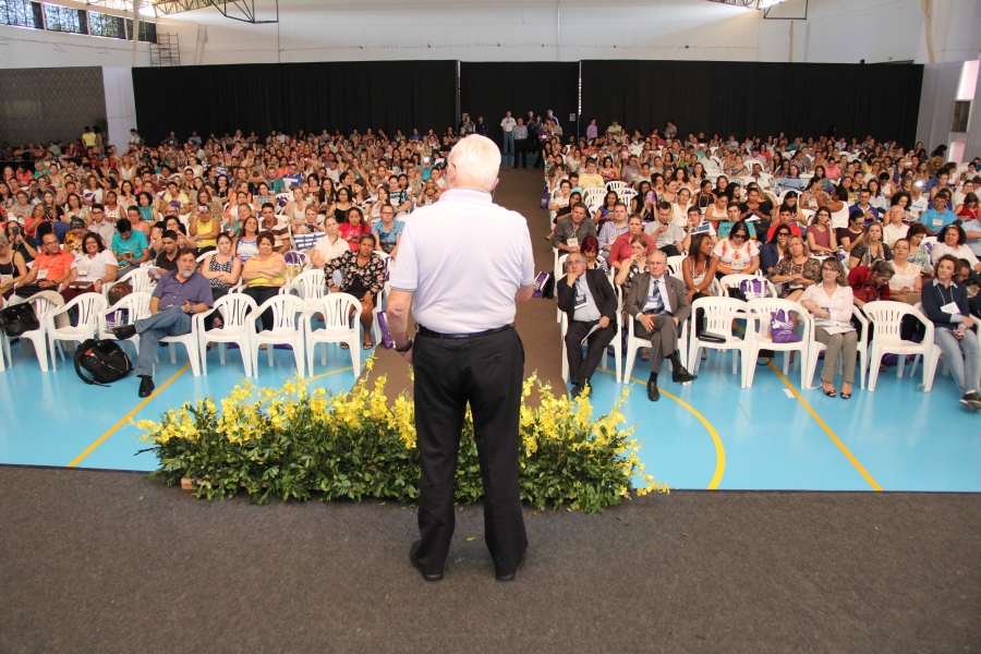 Na tarde de hoje (16), o professor e escritor Celso Antunes contribuiu com o II Congresso Internacional de Educação com a palestra “Formação de Professores, Aprendizagem e Gestão”. Na oportunidade, a Secretaria Municipal de Educação entregou para o professor um material especial mostrando os resultados de um projeto do escritor desenvolvido na Escola Municipal Érico Veríssimo.