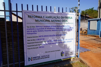 A Secretaria de Educação iniciou neste mês de agosto as obras de ampliação e reforma da Escola Municipal do bairro Menino Deus, em Lucas do Rio Verde. As melhorias na unidade de ensino devem ampliar a capacidade de atendimento aos alunos e professores, além de melhorar a estrutura já existente.