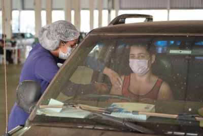 Em dia recorde, 2.146 pessoas foram vacinadas em apenas uma manhã. A ação de imunização, como de costume, foi realizada no Parque de Exposições, das 7h às 10h, com entrada para pedestres e acesso de carros no drive-thru.