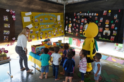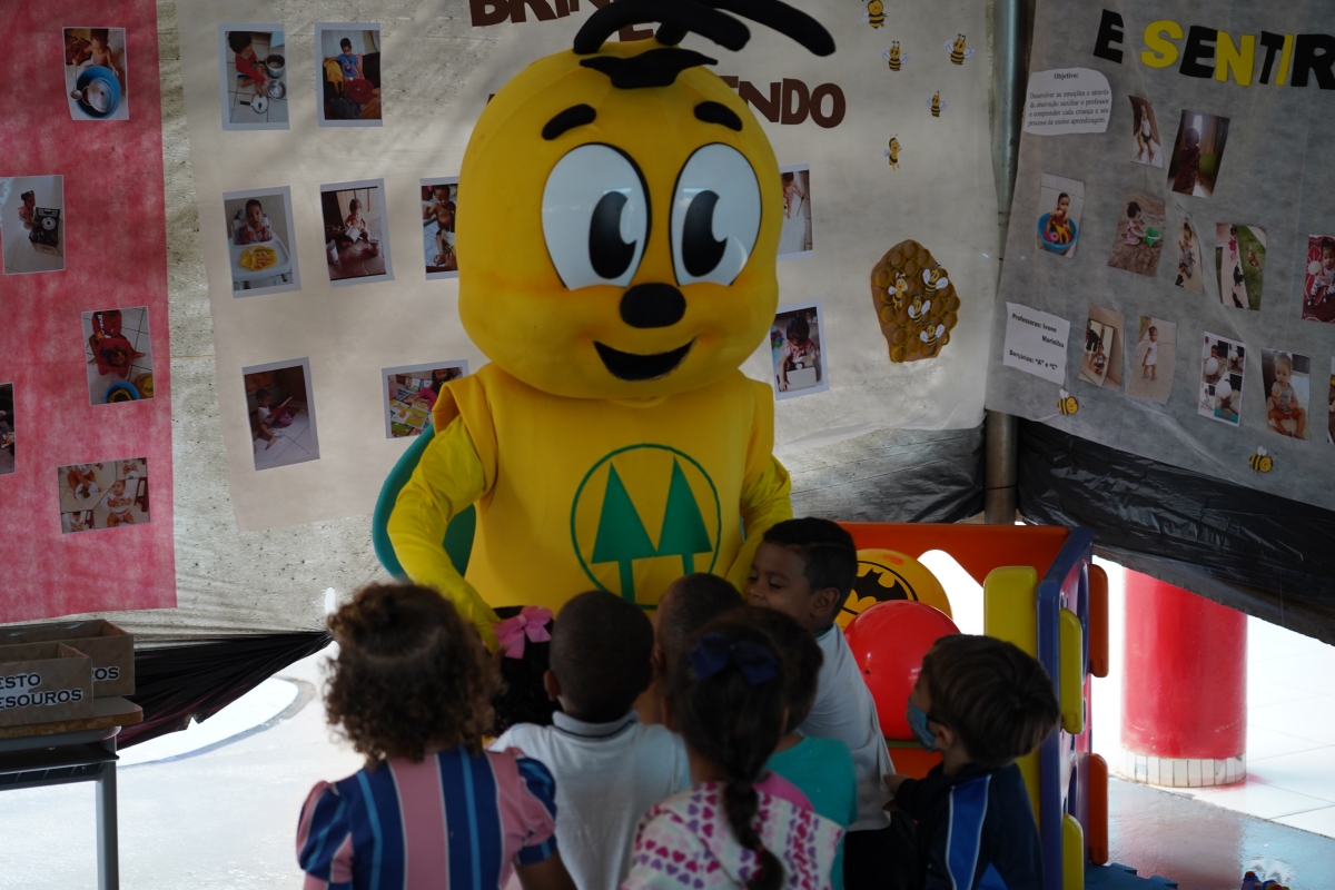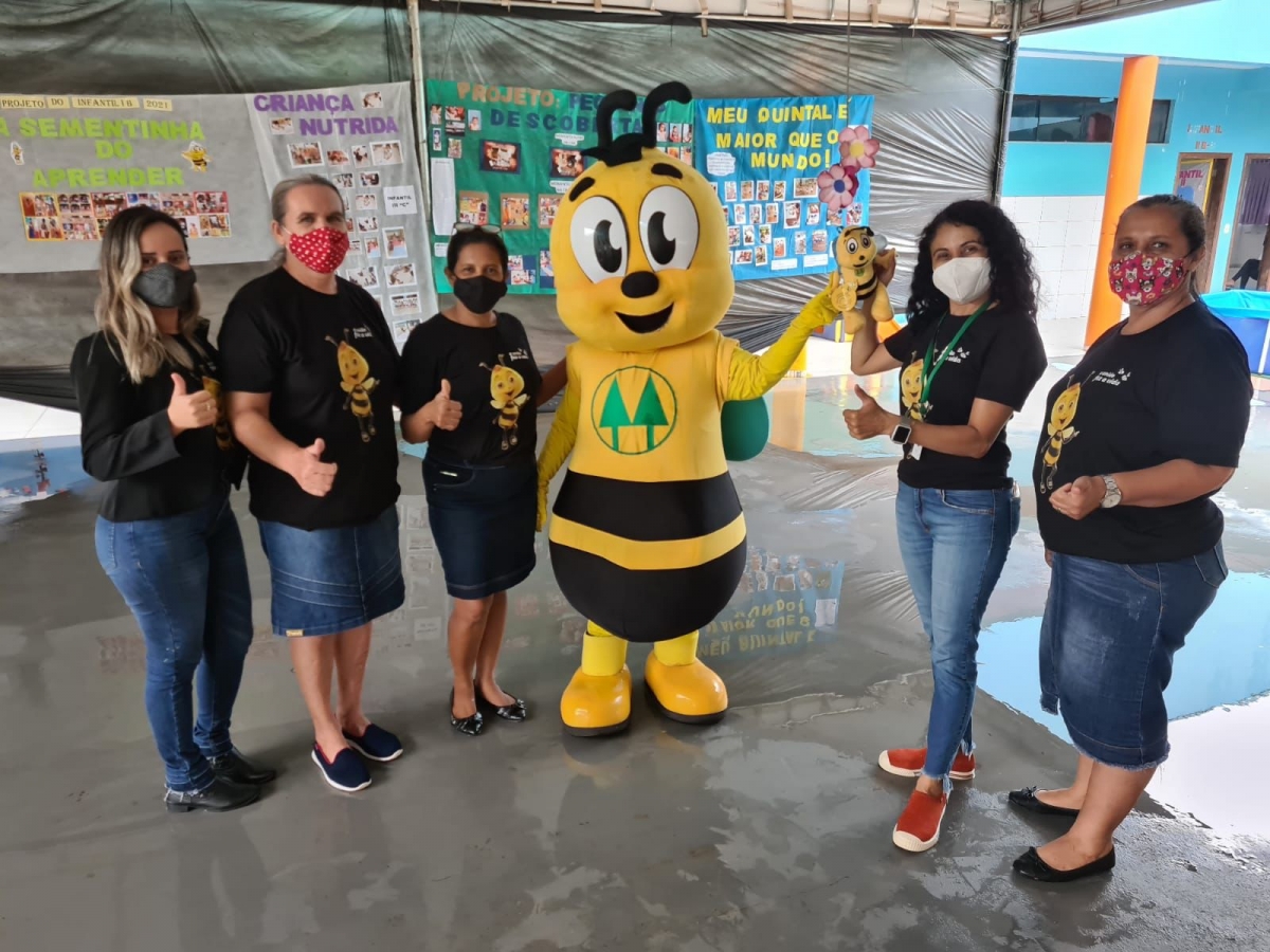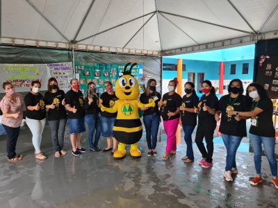 No momento da integração, as unidades escolares receberam a visita descontraída da abelha, o mascote do Programa A União Faz a Vida.