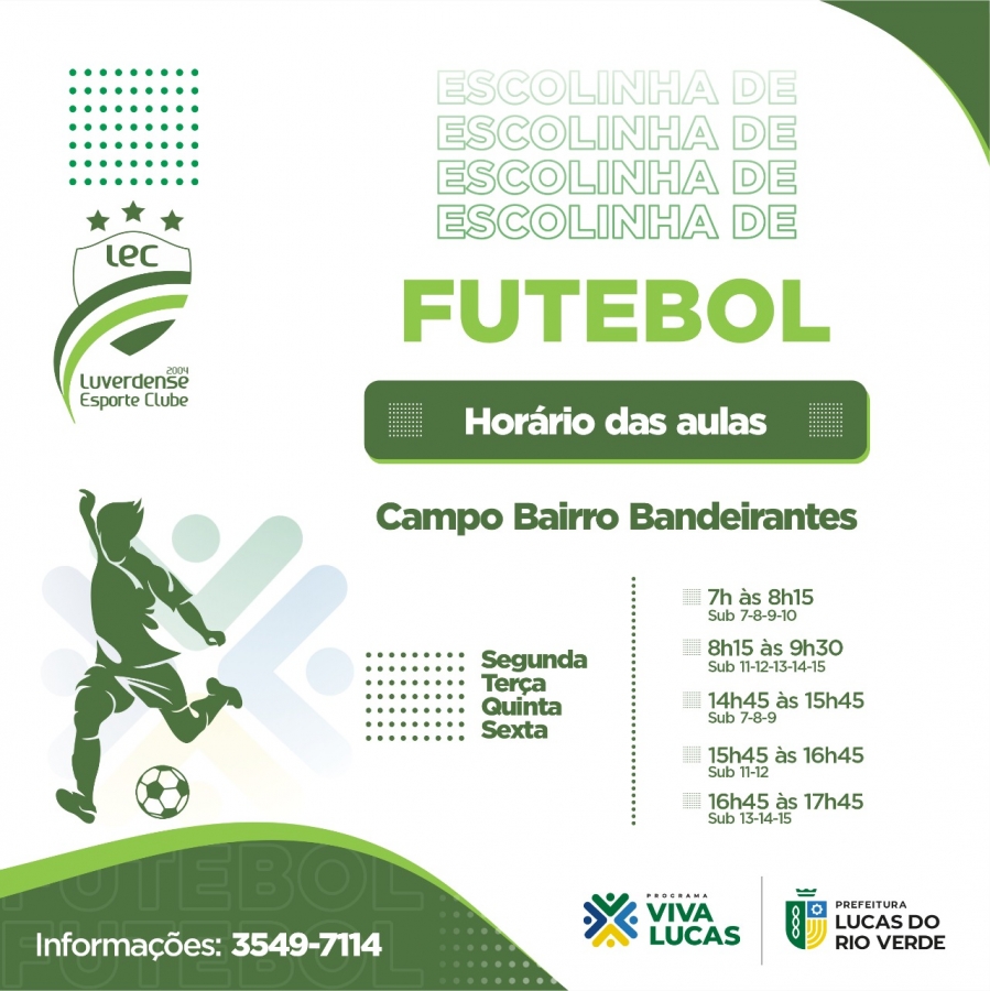 As atividades físicas e escolinhas esportivas atendidas pelo Programa Viva Lucas, da Secretaria de Esporte e Lazer, retomam a partir desta terça-feira (02). As modalidades são oferecidas de maneira gratuita em praças, escolas e espaços públicos de Lucas do Rio Verde.