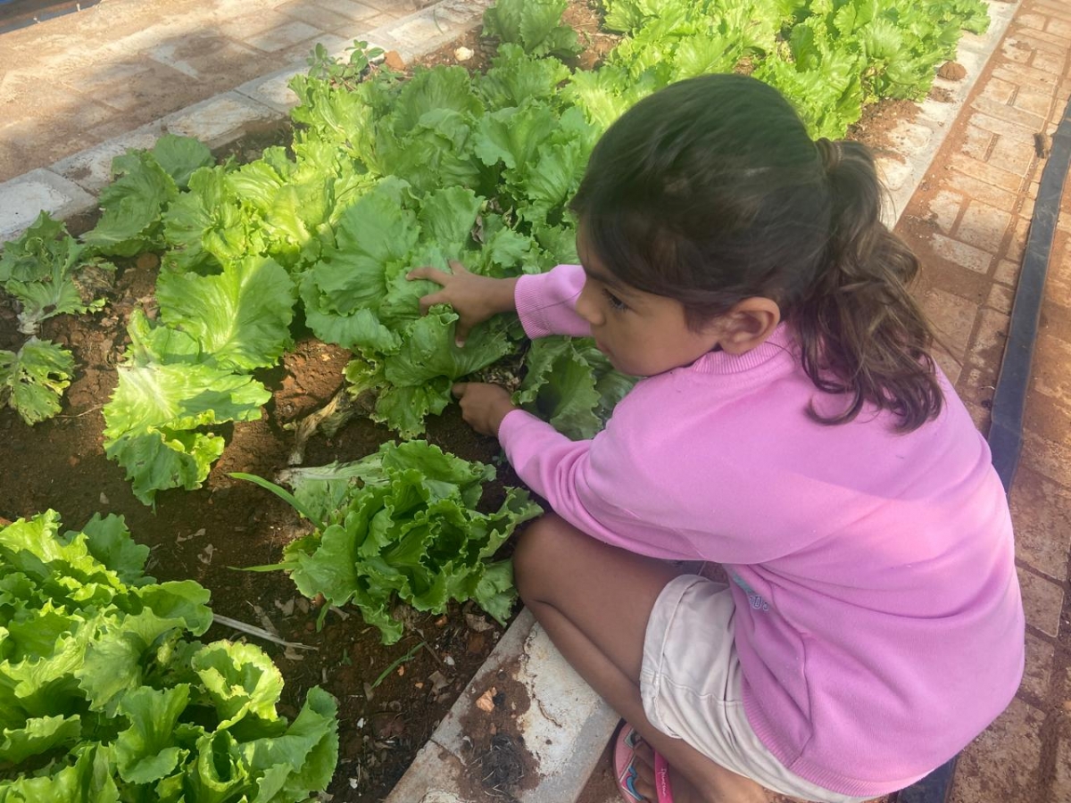 Por meio dessa proposta pedagógica, os alunos puderam acompanhar todas as etapas, desde o plantio até a colheita de alface, cebolinha, coentro, tomate, cenoura e beterraba, além de ervas medicinais. No espaço, também são cultivados milho, pepino, abóbora, mandioca e diversas frutas, entre elas melancia, goiaba, acerola, pitanga, maracujá e caju.