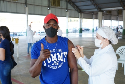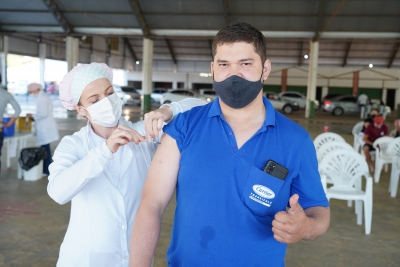 A operadora de caixa Valdira Batista Santos foi bem cedinho ao Parque de Exposições para garantir a sua dose. “Estava com bastante medo, eu já tinha pego o coronavírus também. Mas agora já estou aliviada, muito pela minha família”, contou Valdira, que já aguarda pelo momento da segunda dose.
