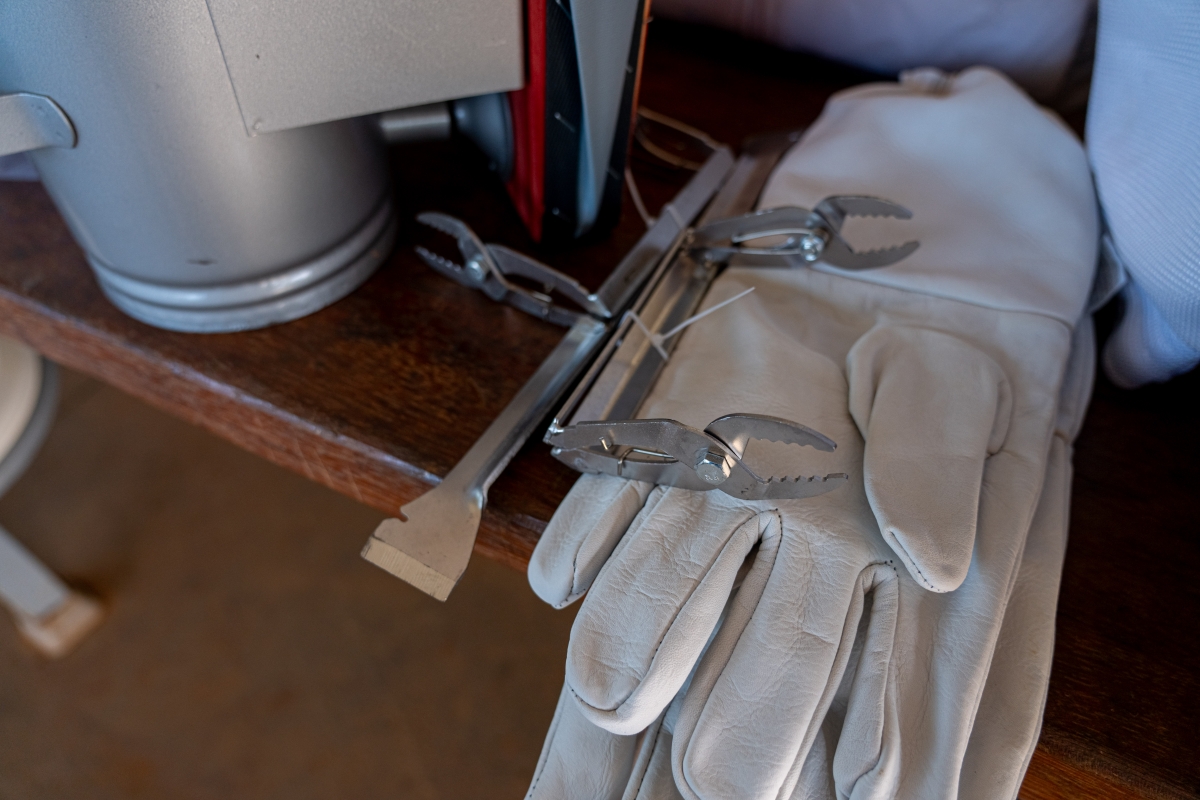 Cada kit é composto por um macacão de malha livre, um par de luvas de couro macias e resistentes, um fumigador apícola e um formão para manuseio de quadros.