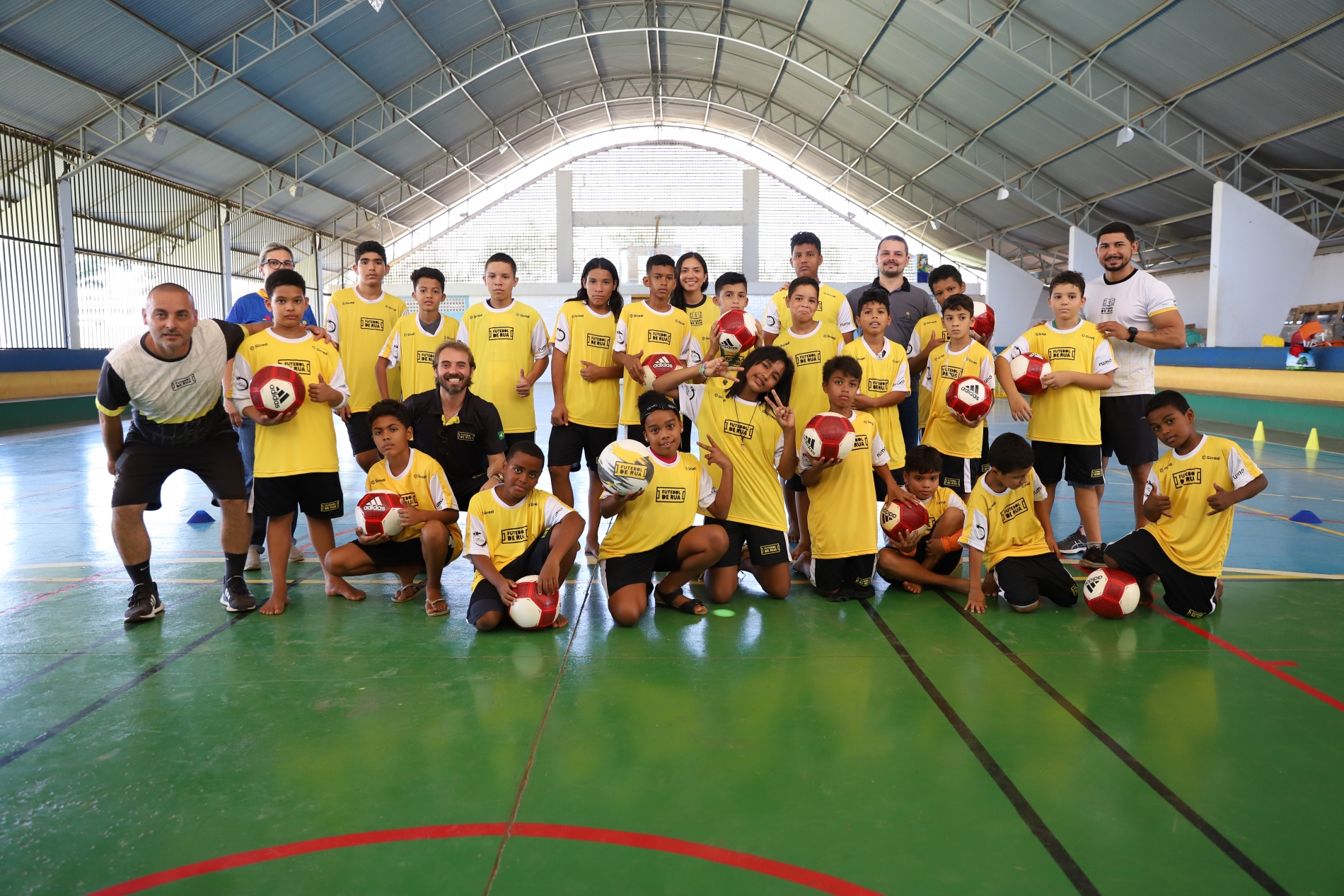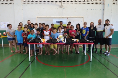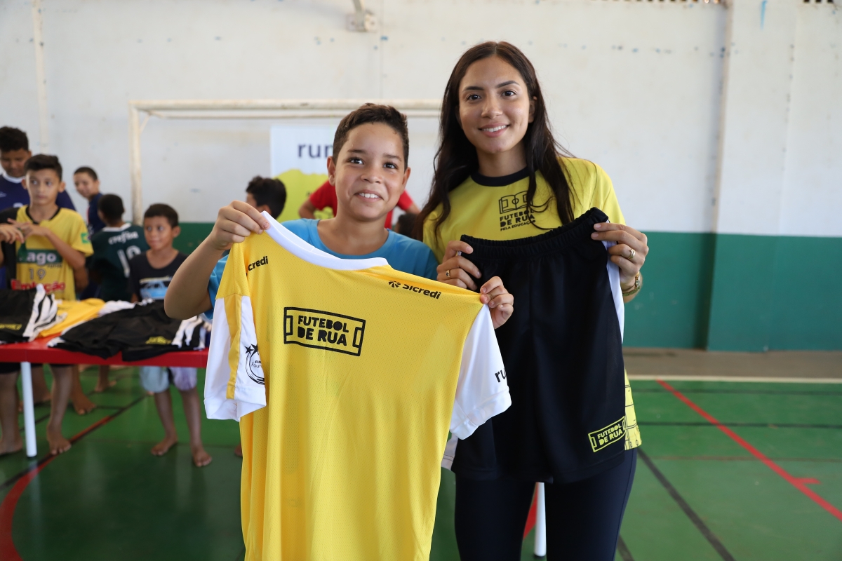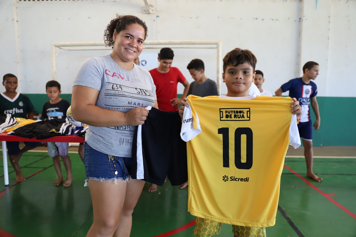 A Prefeitura de Lucas do Rio Verde, Instituto Futebol de Rua, empresa Rumo Logística, Sicredi realizaram, nesta segunda-feira (12), a entrega de uniformes e demais kits de treino aos 58 estudantes da Escola Municipal Cecília Meireles que participam do projeto Futebol de Rua pela Educação, iniciado em março de 2023, com crianças e adolescentes desta comunidade do bairro Tessele Junior.