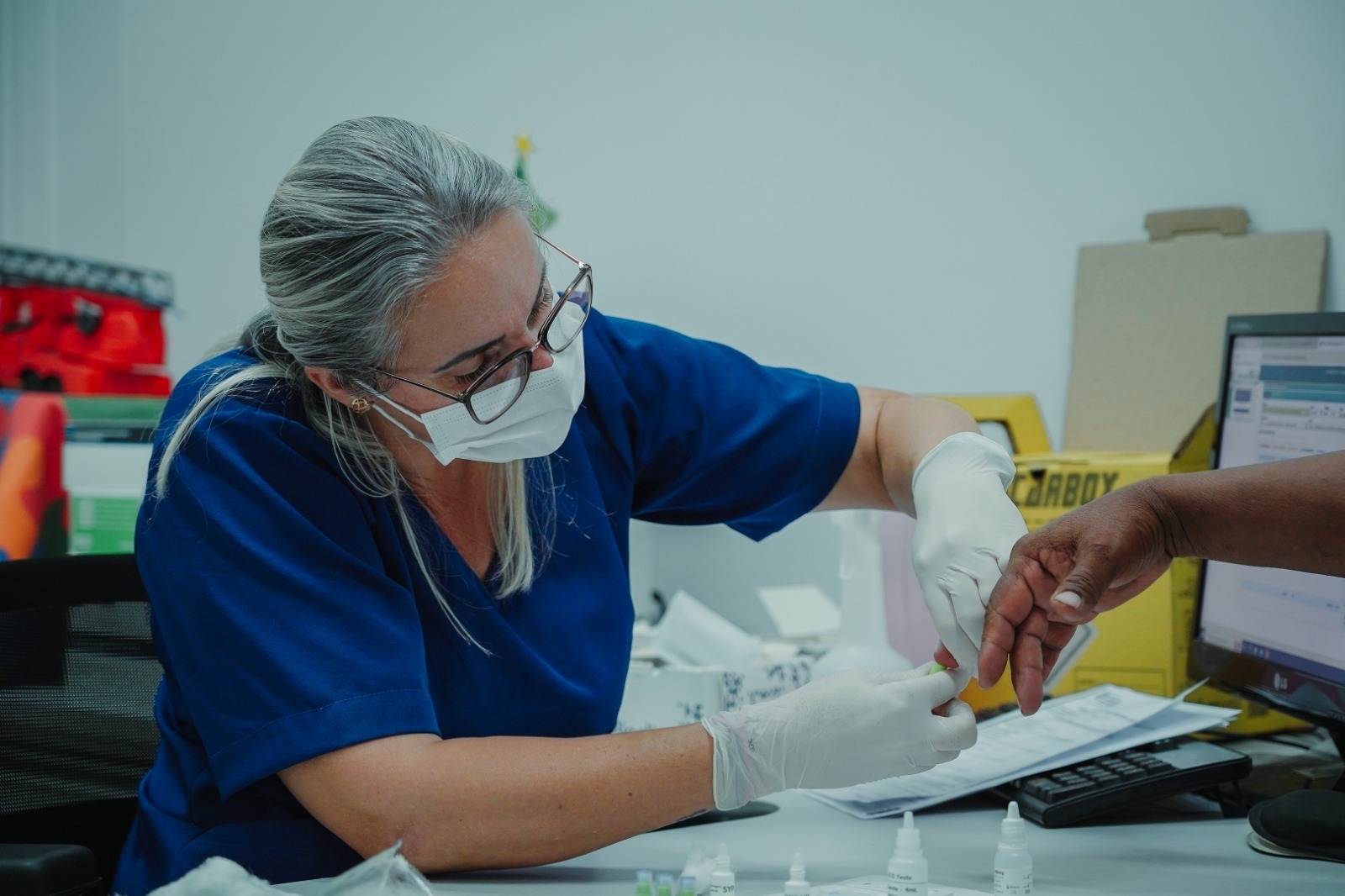 “São apenas algumas gotas de sangue, que são colocadas em contato com o reagente. O resultado sai em poucos minutos. No caso do HIV, se der positivo, o teste é refeito e o paciente é encaminhado para exame de sangue”.