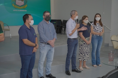 Luciana foi apresentada pelo prefeito Miguel Vaz aos servidores municipais na manhã desta segunda-feira, após a oração semanal realizada no auditório dos Pioneiros, no Paço Municipal.