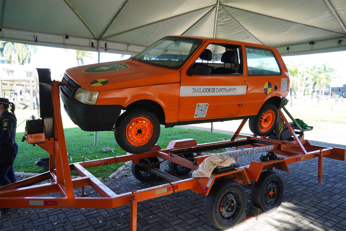Dando continuidade as ações da campanha nacional do Maio Amarelo, a Prefeitura de Lucas do Rio Verde, em parceria com a 49ª Ciretran, disponibilizou um simulador de capotamento, na última sexta-feira (10). A iniciativa teve a participação das pessoas que passavam pela Praça dos Migrantes e de alunos das escolas.