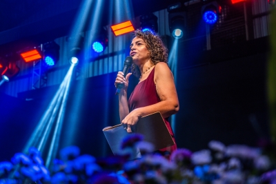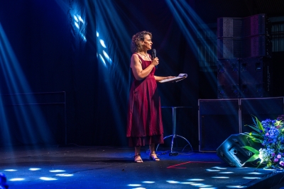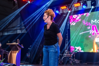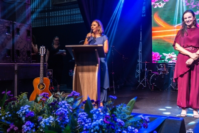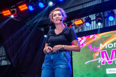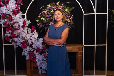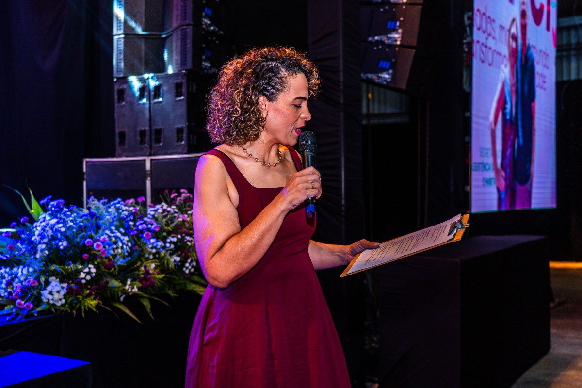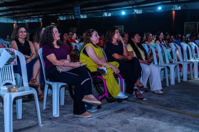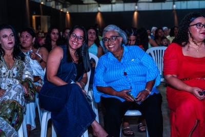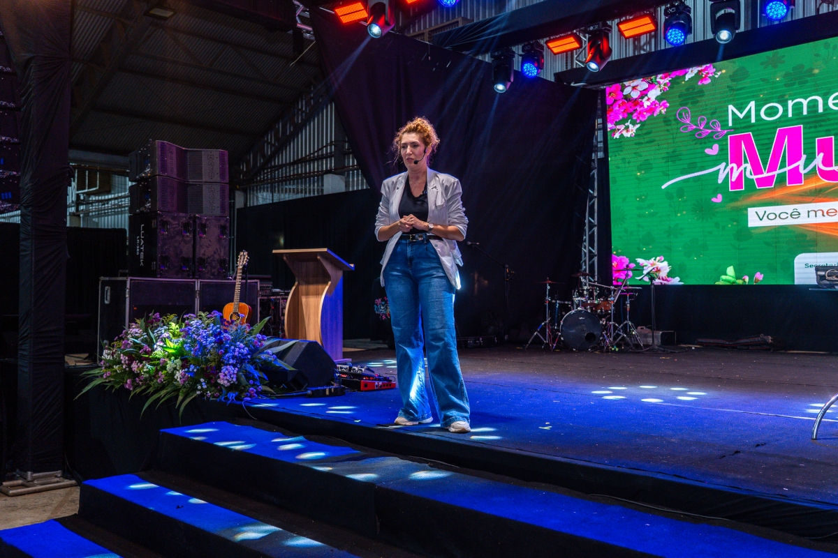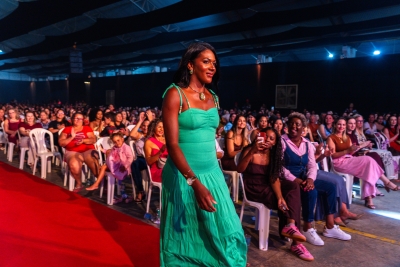 Com bom humor, a palestrante Renata Pasini deu início à programação da festa com uma reflexão sobre o tema “Beleza e Poder: o autocuidado como necessidade, e não luxo”, destacando a importância de as mulheres reservarem um momento na rotina diária para cuidar de si.