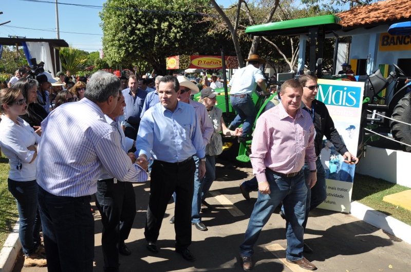 Antes de se dirigirem ao Pavilhão do Algodão no Parque de Exposições Roberto Munaretto, onde dezenas de pessoas aguardavam a presença das autoridades, o governador, o prefeito e o presidente da Comissão Organizadora da Expolucas, Joci Piccini inauguraram a ampliação e revitalização do parque de exposições.