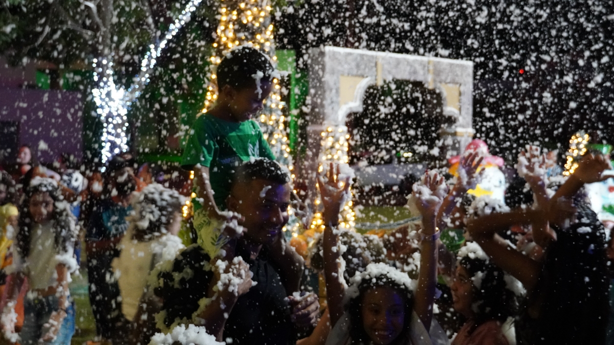 Com a tradicional entrega simbólica da chave da cidade ao bom velhinho pelo prefeito Miguel Vaz, o momento mais esperado da noite contou com um toque especial: uma neve artificial cobriu a praça, enchendo de emoção os olhos de crianças e adultos. A apresentação da Orquestra Sinfônica Jovem coroou a noite de abertura, que deu início à programação natalina que segue até o dia 31 de dezembro.