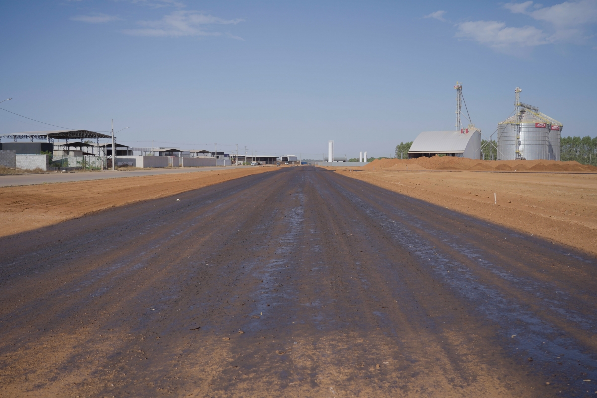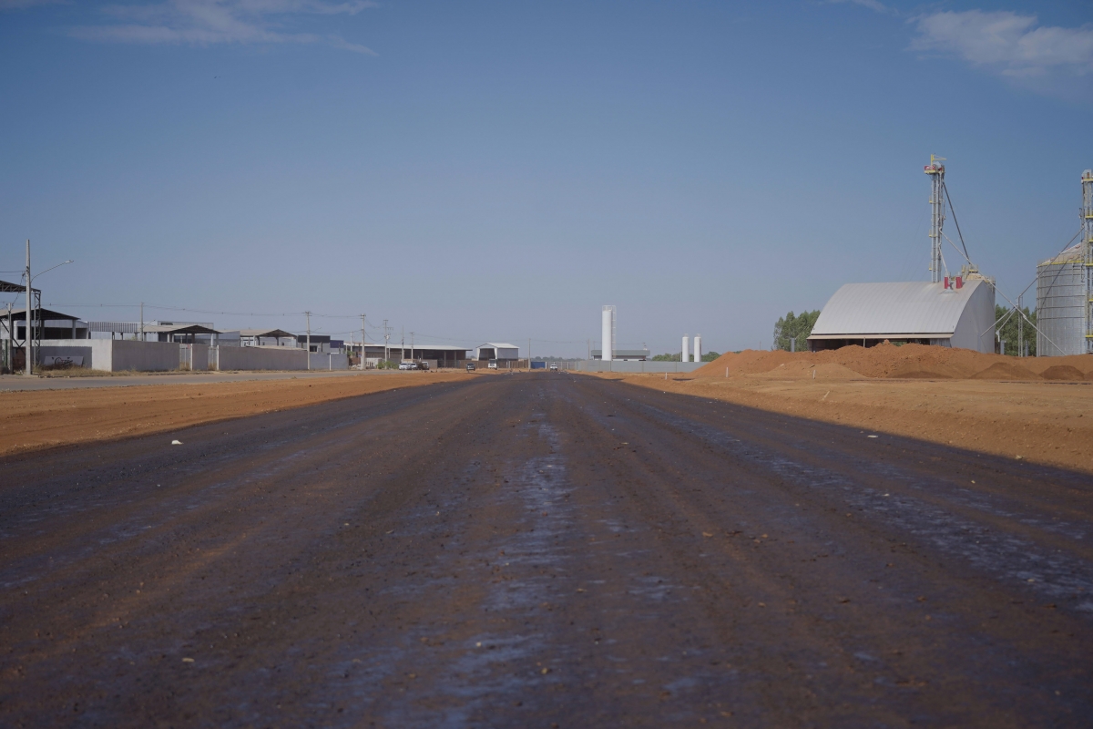 Além disso, 2,1 km do trecho já passaram pelos serviços de terraplanagem e refere-se integralmente ao Loteamento Industrial V, o qual apresenta maior urgência em sua finalização e entrega à população, considerando a demanda por áreas produtivas urbanizadas. Neste trajeto de 0,753 km já foram imprimados, estando aptos para receber os acabamentos de meio-fio e sarjeta.