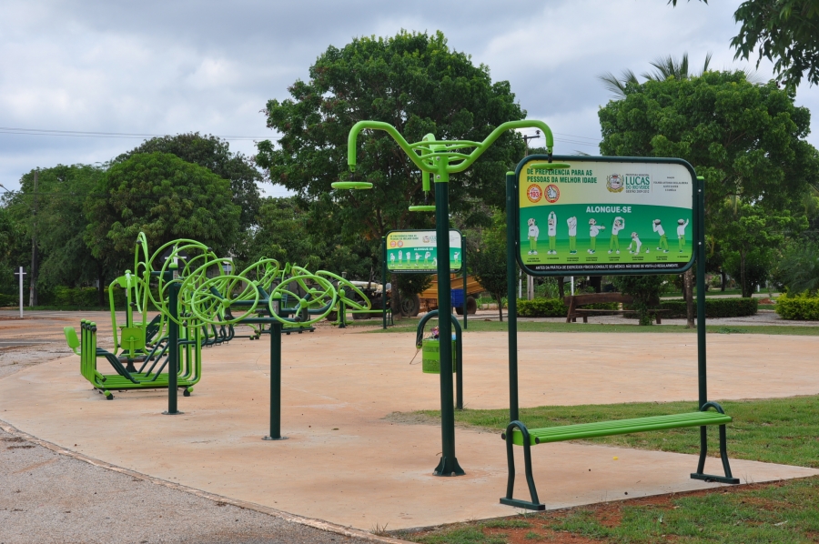Estão sendo reformados os aparelhos da academia da terceira idade, substituídos os bancos quebrados e melhorias na parte de iluminação pública.