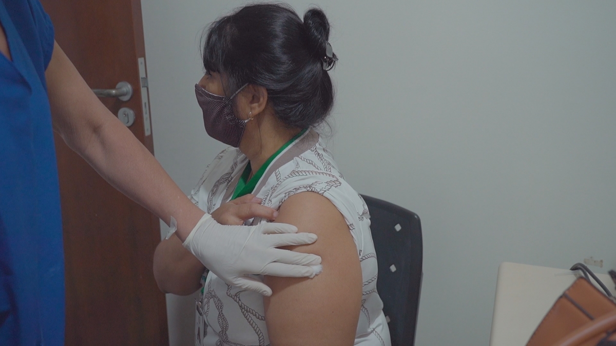 A operadora de caixa Sara Aline Costa Gomes fala do sentimento ao receber a primeira dose da vacina. “Eu faço hemodiálise três vezes na semana, tenho que ir ao hospital, então mesmo assim vou manter os cuidados básicos. Mas estou muito feliz porque a vacina vem para nos ajudar e é um sentimento gratificante”, explica Sara.