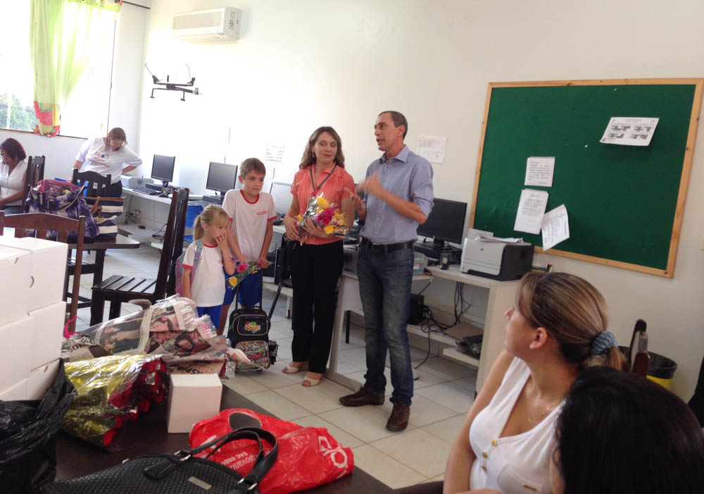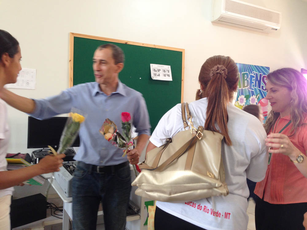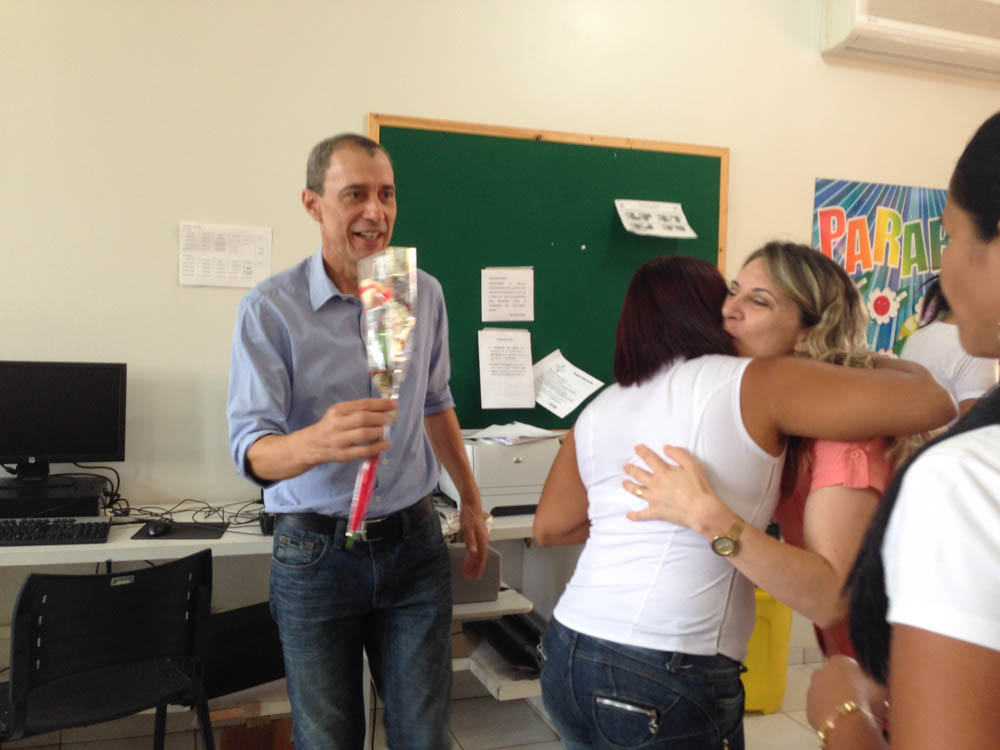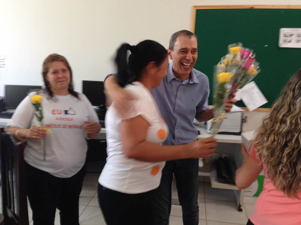O prefeito em exercício Miguel Vaz esteve na Escola Municipal Vinícius de Moraes parabenizando a equipe pelo Dia do Professor comemorado em 15 de outubro. Na oportunidade entregou rosas aos professores como forma de homenagear a dedicação que todos têm pelas crianças do município.
