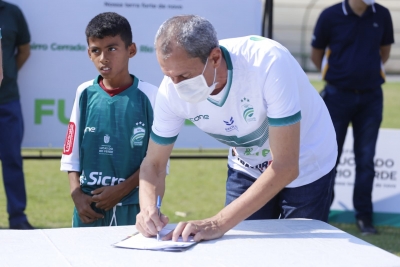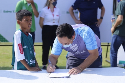 O Estádio Municipal Passo das Emas foi o palco escolhido para o pontapé inicial do projeto das Escolinhas de Futebol. A ação é uma iniciativa da Prefeitura de Lucas do Rio Verde, por meio da Secretaria de Esporte e Lazer, em parceria com o Luverdense Esporte Clube (LEC) e patrocinadores. A assinatura do Termo de Cooperação Técnica foi realizada na manhã deste sábado (28), marcando o início das atividades do programa.