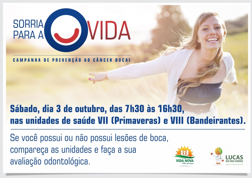 A Prefeitura de Lucas do Rio Verde promove no próximo sábado (03) uma campanha de prevenção ao câncer de boca. A ação será realizada nas unidades de saúde dos bairros Jardim Primaveras e Bandeirantes, das 7h30 às 16h30.