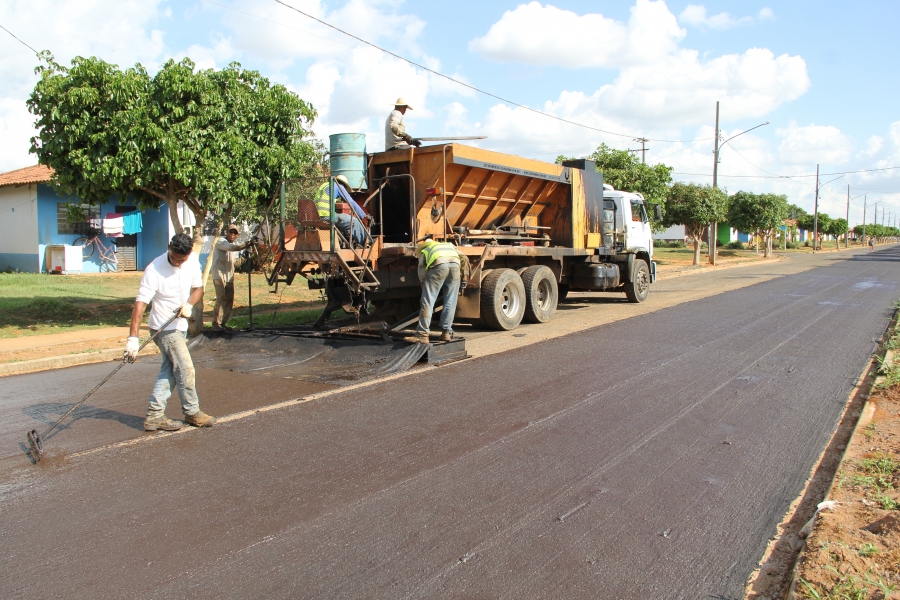 Nos últimos dias, um trecho da Avenida das Acácias, no bairro Bandeirantes, recebeu o serviço e hoje (19) foi a vez da rua Topázio, no bairro Téssele Junior.