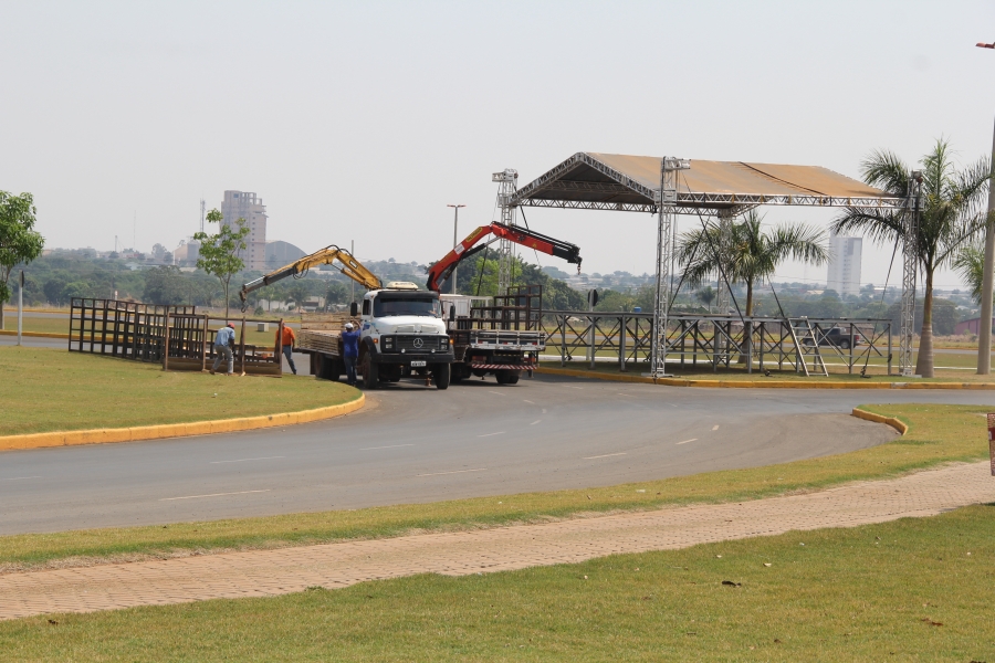 Palco, arquibancada e iluminação estão sendo montados para receber na segunda-feira (07), o tradicional desfile cívico em comemoração à Independência do Brasil. Seguindo o modelo do ano passado, o desfile cívico de 7 de setembro será realizado na rotatória do Paço Municipal, às 16h.