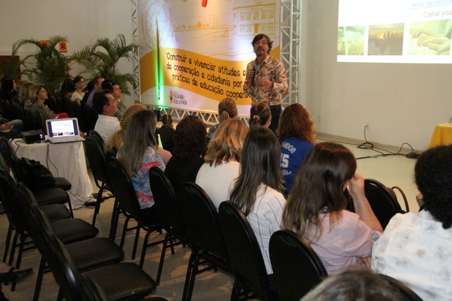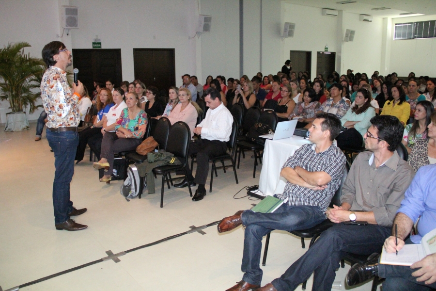 Professores e gestores escolares dos municípios de Lucas do Rio Verde, Nova Mutum, Nova Maringá, São José do Rio Claro, Nobres, Santa Rita do Trivelato, Itanhangá, Tapurah e Cuiabá participaram na manhã de hoje (06) da palestra “A cooperação no ambiente escolar e na aprendizagem: o papel dos líderes neste sucesso”, com o professor Dr. Max Haetinger.