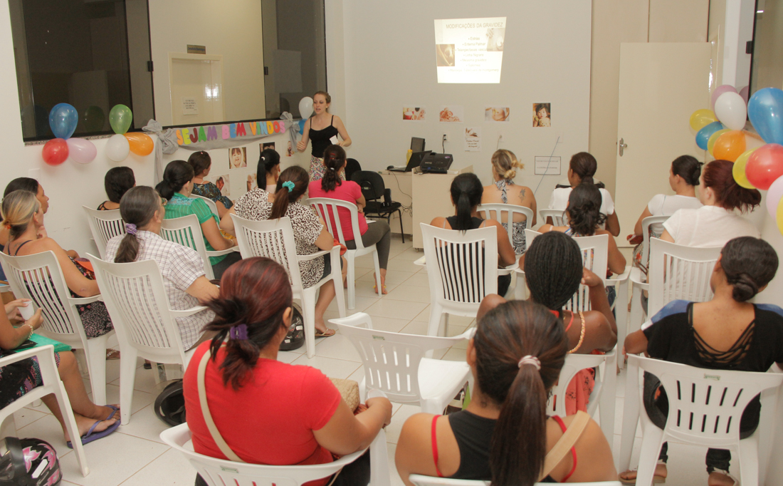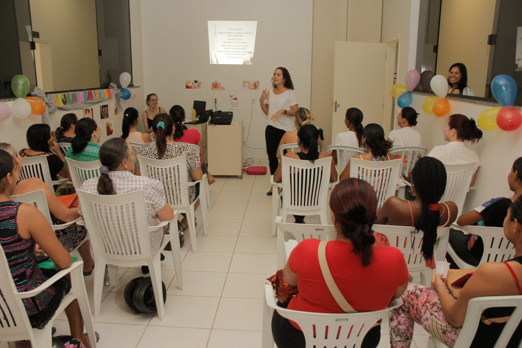 As 26 gestantes presentes participaram de palestras e orientações sobre mudanças, normalidades e situações adversas na gestação. Além das palestras, foram realizadas dinâmicas e apresentação de um vídeo que relata o crescimento do bebê até o parto, para que as mulheres entendam as mudanças que estão acontecendo no corpo.